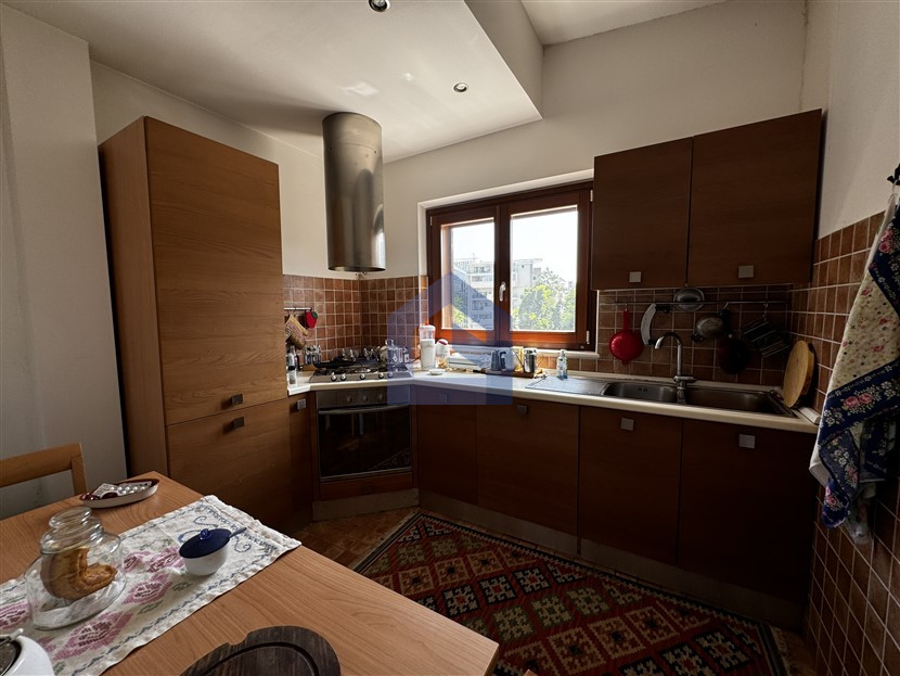 L’abitazione, di mq.117 catastali interni, è composta da un ingresso che si apre direttamente nell’ampio e luminoso soggiorno di mq.38 con accesso al bellissimo enorme terrazzo da godersi in compagnia, sulla sinistra la cucina semi abitabile, sulla destra del living un bagno con doccia a servizio della zona giorno; la parte notte ospita due camere matrimoniali di cui una con balcone, un angolo studio/disimpegno ed un secondo bagno dotato di vasca.
