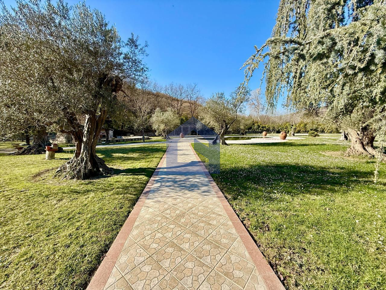 • Zona verde curata con ulivi secolari, conifere e piante ornamentali