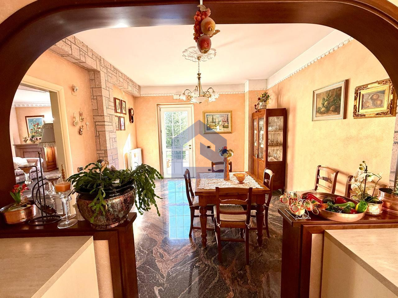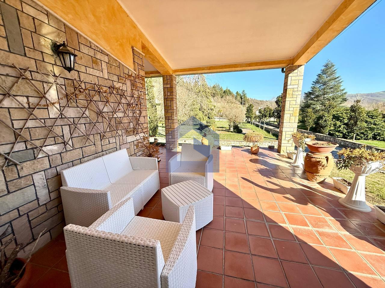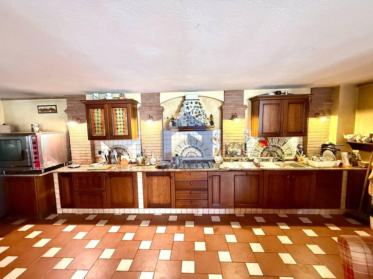 Villa di grande prestigio immersa nel verde, ideale sia come residenza privata sia come investimento per attività ricettiva (B&B, location per eventi, matrimoni e cerimonie), grazie alla disposizione degli spazi e alle numerose camere con bagno privato. Ottima accessibilità grazie alla vicinanza alla superstrada. Distribuzione interna Piano seminterrato: Grande taverna in cotto con cucina e camino, antibagno e bagno, ripostiglio, cantina e ampio garage. Piano terra (zona giorno): Ingresso principale con disimpegno, elegante salotto con finiture in marmo e accesso tramite porte finestre a un ampio patio. Zona soggiorno e cucina con materiali ricercati (mattoncini e dettagli in pietra) e camino. Presenza di piano terra rialzato tipo mini appartamento con: bagno lavanderia bagno grande palestra camera da letto studio